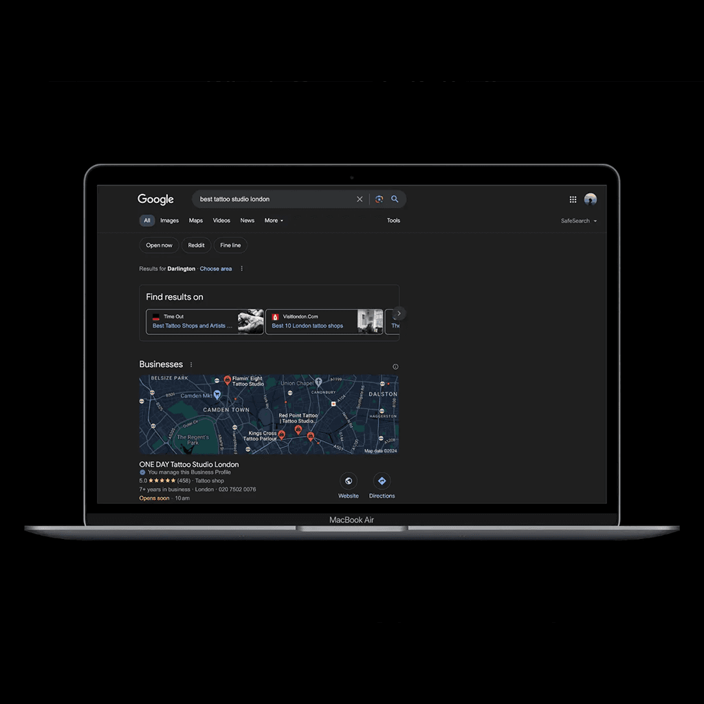 We provide a range of digital marketing services specifically for tattoo artists and studios, including web design, Google Ads management, blog writing, SEO, Meta ads, recruitment support and more – all tailored to help you get more clients and bookings.