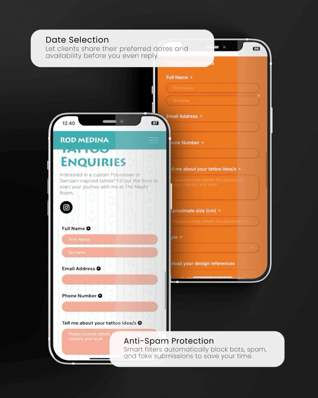 At Ink Marketing, we believe your time is best spent doing what you love: tattooing. That's why we champion the use of lead-qualifying booking forms ? Strategic forms that help identify serious clients before you respond. on your website. These aren't just simple contact forms; they're strategic tools designed to filter out the noise and connect you directly with high-intent ? Clients who are ready and motivated to book. , high-quality clients, dramatically reducing the time between initial enquiry and a confirmed booking.